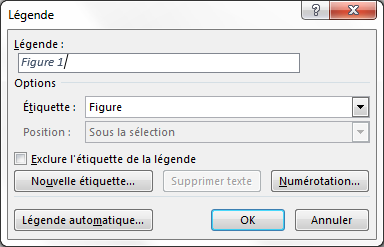 Références > Légendes > Bouton Insérer une légende / table des illustrations