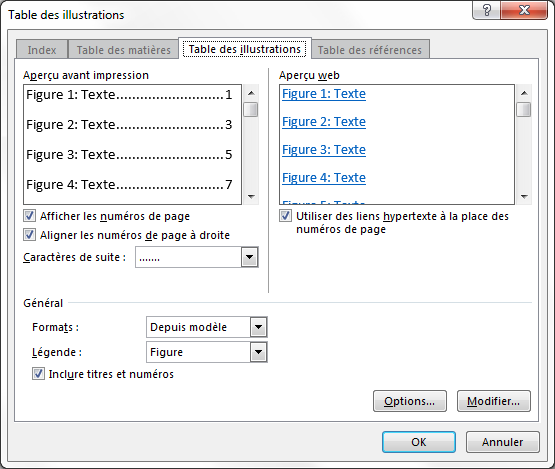 | Voir aussi le support Microsoft Office : Créer une table des illustrations |